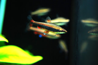 我把幾隻 3 個月前出生的紅翅濺水魚送去和他作伴